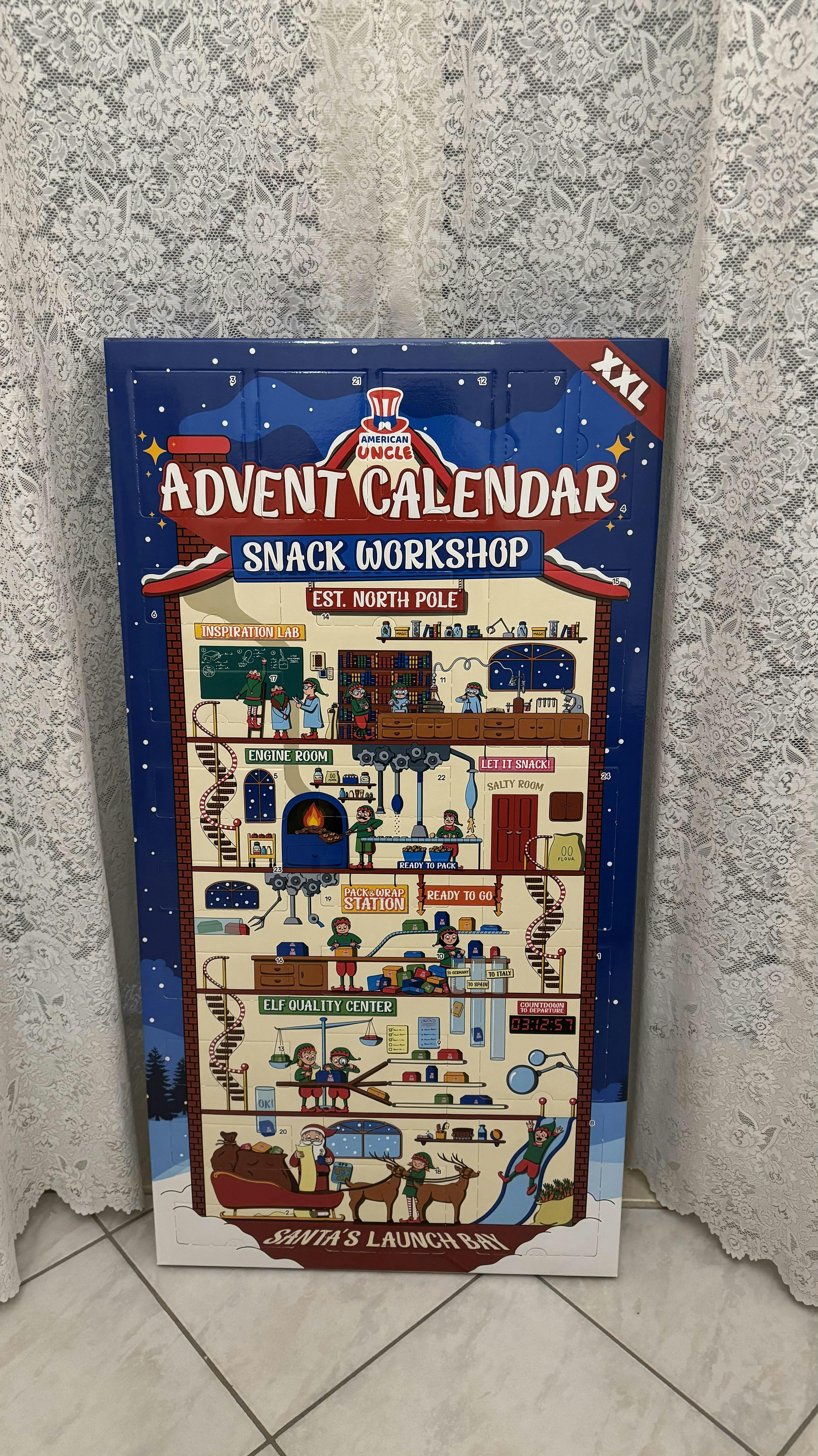 L'attesa del Natale è magica e meravigliosa quasi quanto il giorno di Natale stesso. Per chi, come me, attende per tutto l'anno questo periodo, alberi e luci non sono mai abbastanza per esprimere le emozioni e le sensazioni che si vivono in questi giorni. Quest'anno, quindi, non potevo non aggiungere alla mia collezione quel qualcosa in più, quella chicca che mi permettesse di vivere questi giorni di attesa in modo ancora più unico ed intenso. Ecco quindi il Calendario dell'Avvento... l'ultimo arrivato in casa dello Zio! Composto da 24 caselle, che vanno dal 1° al 24 Dicembre, all'interno di ognuna potrai trovare uno o più snack a sorpresa dolci o salati che accompagneranno le tue giornate e il tuo palato fino al grande giorno!