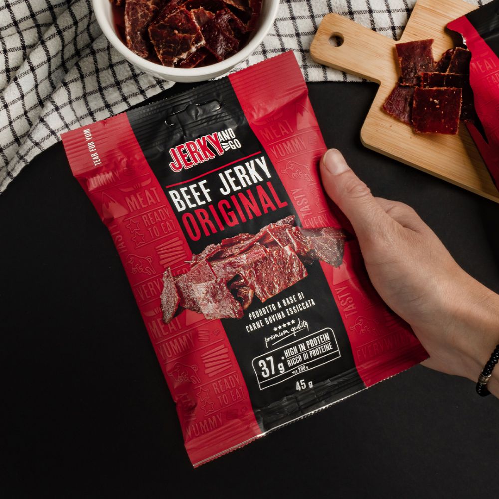 8 Jerky and Go Beef Jerky Original, 8 confezioni di carne secca di manzo da 45g