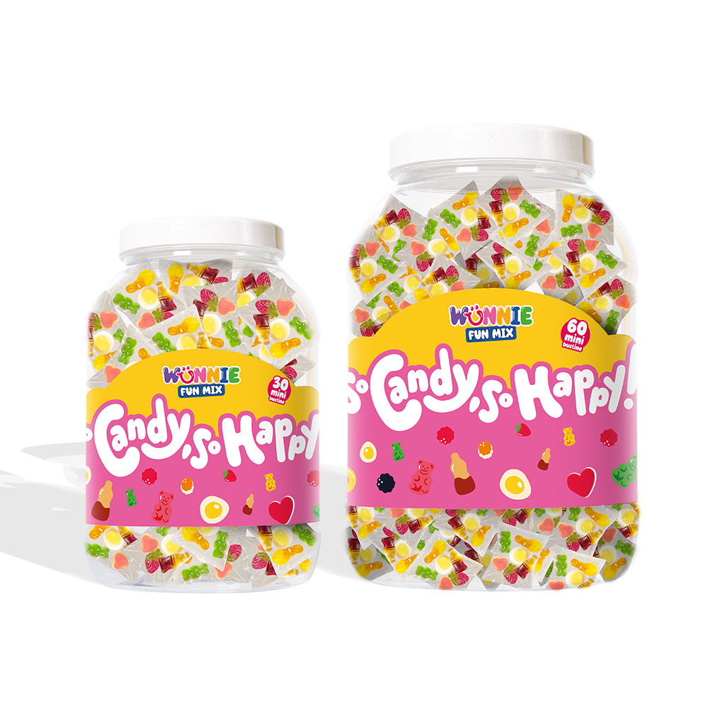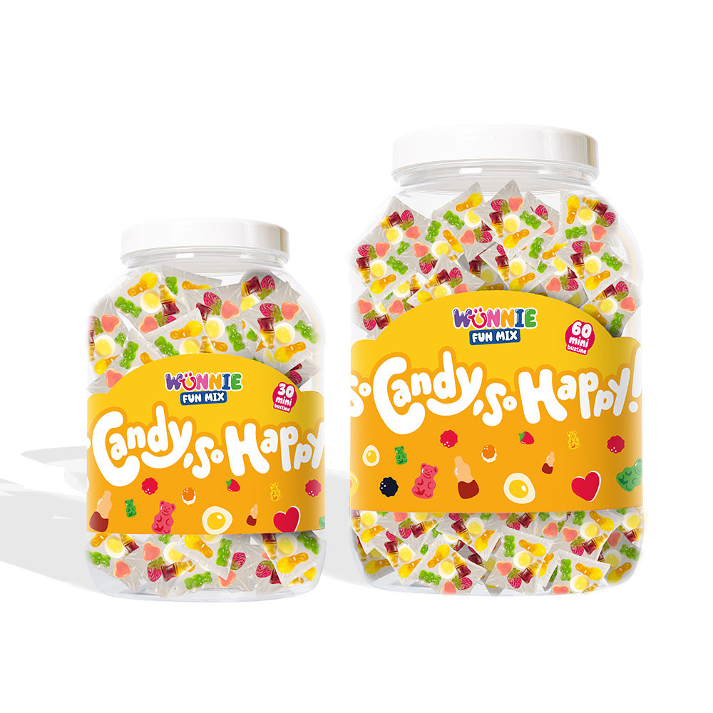 Wunnie Fun Mix è il barattolo che trasforma ogni momento in una festa: 30 o 60 bustine monoporzione di caramelle gommose dai gusti più pazzi e colorati del pianeta. Pratiche, igieniche e perfette per premiare, condividere, distribuire (e nascondere nell’ultimo cassetto della scrivania). Aggiungilo al carrello oggi stesso!