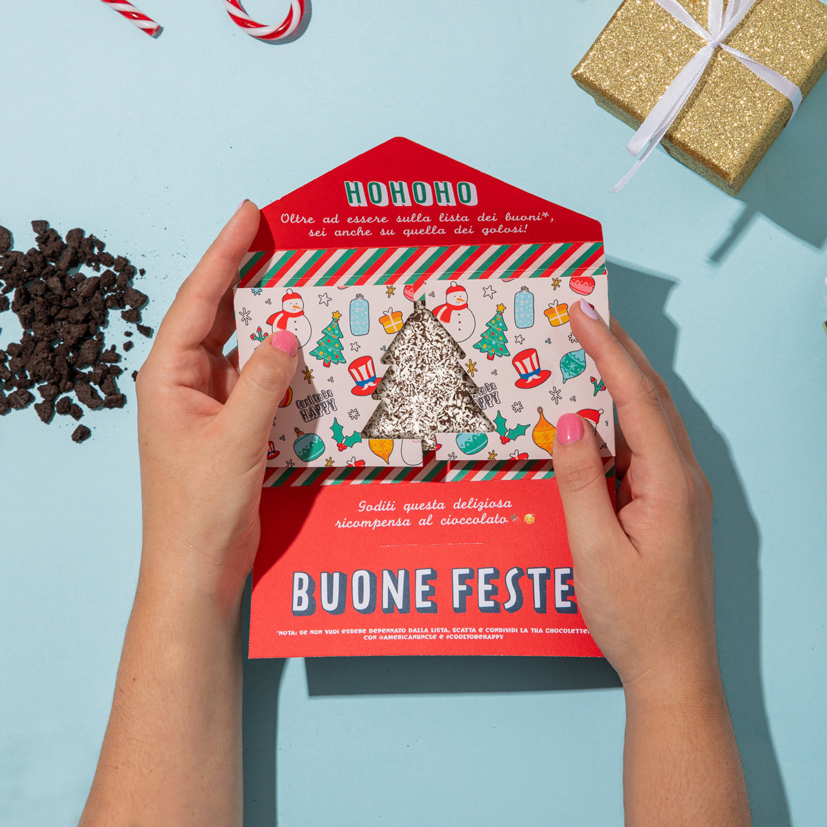 Ma poi l’hai vista la confezione? È una scatolina a forma di lettera con tanto di messaggio d’auguri integrato, così non dovrai pensare proprio a niente. Che dire? Natale + cioccolato = una combo irresistibile. Aggiungi subito la tua ChocoLetter al carrello!